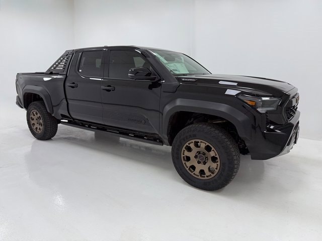 Engine: 2.4L i-FORCE MAX 4-Cyl. Turbo Hybrid Powertrain, Transmission: 8 speed automatic, Exterior Color: Black, Comments: 2026 Toyota Tacoma Hybrid Trailhunter 2.4L 4-Cylinder 4WD Passed Safety Inspection, Oil and Filter Changed, 3.583 Axle Ratio, 4-Wheel Disc Brakes, 9 Speakers, ABS brakes, Air Conditioning, Alloy wheels, AM/FM radio: SiriusXM, Anti-whiplash front head restraints, Apple CarPlay/Android Auto, Auto High-beam Headlights, Auto-dimming Rear-View mirror, Automatic temperature control, Brake assist, Bumpers: body-color, Driver door bin, Driver vanity mirror, Dual front impact airbags, Dual front side impact airbags, Electronic Stability Control, Emergency communication system: Safety Connect (up to 10-year trial subscription), Exterior Parking Camera Rear, Four wheel independent suspension, Front anti-roll bar, Front Bucket Seats, Front Center Armrest, Front dual zone A/C, Front fog lights, Front reading lights, Fully automatic headlights, Garage door transmitter: HomeLink, Heated and Ventilated Front Bucket Seats, Heated door mirrors, Heated front seats, Heated steering wheel, Illuminated entry, JBL Premium Audio, Knee airbag, Leather Shift Knob, Leather steering wheel, Low tire pressure warning, Navigation system: Drive Connect Cloud Navigation (1-year trial subscription), Occupant sensing airbag, Outside temperature display, Overhead airbag, Overhead console, Panic alarm, Passenger door bin, Passenger vanity mirror, Power door mirrors, Power driver seat, Power passenger seat, Power steering, Power windows, Radio: 14" Toyota Audio Multimedia, Rear anti-roll bar, Rear step bumper, Rear window defroster, Remote keyless entry, Security system, SofTex Seat Trim, Speed control, Speed-sensing steering, Split folding rear seat, Spray-on Bed Liner, Steering wheel mounted audio controls, Tachometer, Telescoping steering wheel, Tilt steering wheel, Traction control, Trip computer, Turn signal indicator mirrors, Variably intermittent wipers, Ventilated front seats, Wheels: 18" Bronze-Finished Trailhunter Alloy., Status: In Stock,Stock #: 057873, Trim: Trailhunter